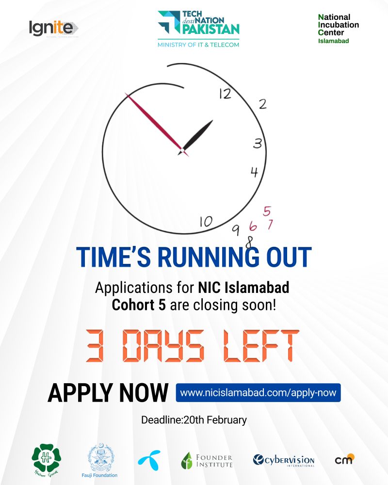 Only 5 Days Left to Apply for National Incubation Centre Islamabad (NIC‑Islamabad) Cohort 5! Alina Atta February 16, 2026 Click here to Read